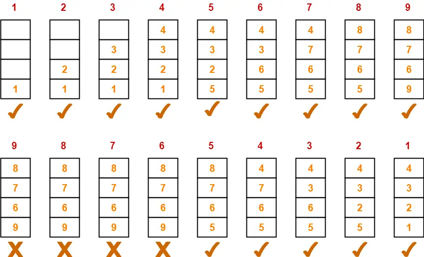 1, 2, 3, 4, 5, 6, 7, 8, 9, 9, 8, 7, 6, 5, 4, 3, 2, 1