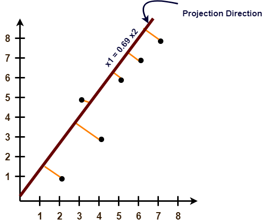 • We convert the dimensions of data from 2 dimensions (x1 and x2) to 1 dimension (z1).