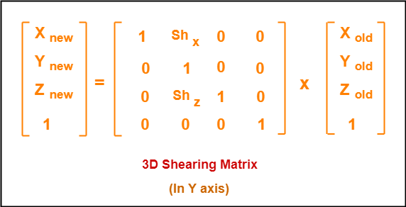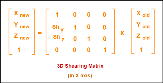 - New coordinates of the object O after shearing = (Xnew, Ynew, Znew)