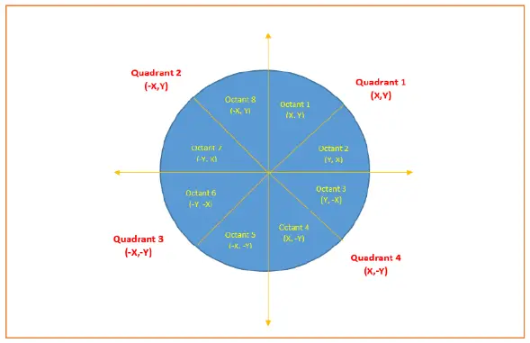 Now, the points of octant-2 are obtained using the mirror effect by swapping X and Y coordinates.