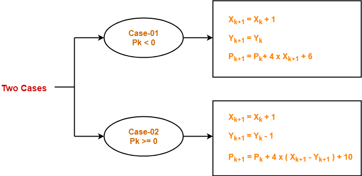 Find the next point of the first octant depending on the value of decision parameter Pk.