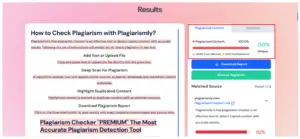 Check-Plagiarism.com also delivered accurate results, making it a reliable alternative to Turnitin. This time, we tested it with a freshly written article as a reference. The tool efficiently highlighted the plagiarized parts that we were not even aware of. This impressive precision ensures that it will not disappoint you at all.