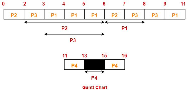 | P4 | 16 | 16 – 5 = 11 | 11 – (2+1) = 8 |