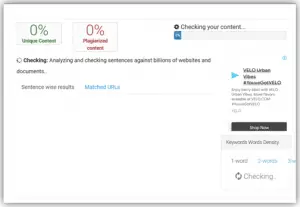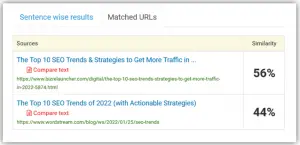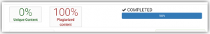 Once the tool has finished checking your content, you can see the percentage of plagiarism it has detected. As suspected, the content we checked is 100% plagiarized: