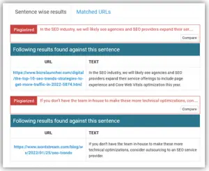 If you know the content you’re checking is plagiarized, then finding the source to it can help you remove it accordingly. So, when you check for plagiarism, you can locate the reference to it as seen above. This allows you to find the original author and website.
