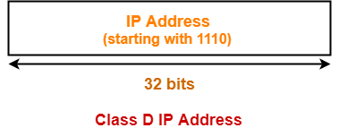 | If the 32 bit binary address starts with bits 1110, then IP Address belongs to class D. |