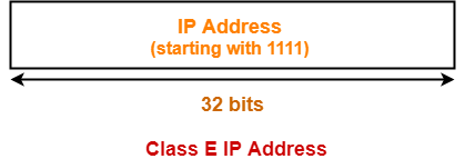 | If the 32 bit binary address starts with bits 1111, then IP Address belongs to class E. |