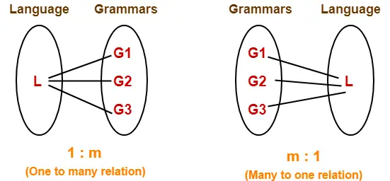 - But given a language L(G) = { ab }, we have two different grammars generating that language.