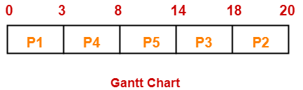 - Average Turn Around time = (3 + 19 + 16 + 5 + 10) / 5 = 53 / 5 = 10.6 unit