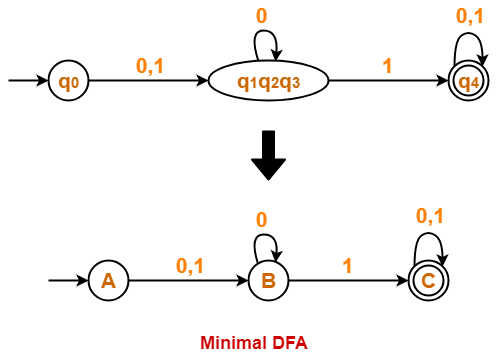 • The DFA in its minimal form is called as a Minimal DFA.