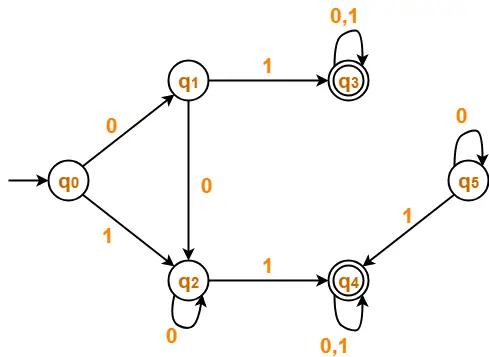 • States q3 and q4 are equivalent and can be merged together.