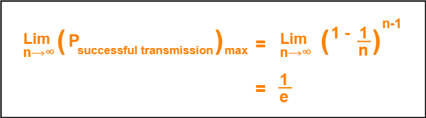 (Psuccessful transmission)max = (1 – 1/n)n-1