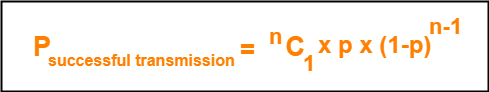 • Probability of successful transmission = nC1 x p x (1-p)n-1