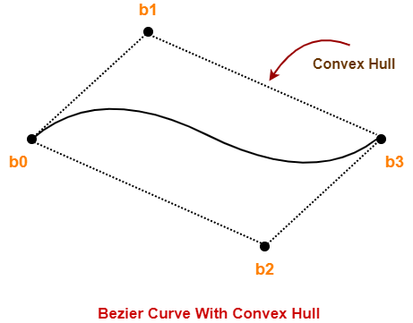 Bezier curve is always contained within a polygon called as convex hull of its control points.