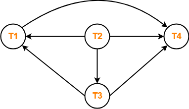 • Draw an edge for each conflict pair such that if Xi (V) and Yj (V) forms a conflict pair then draw an edge from Ti to Tj.