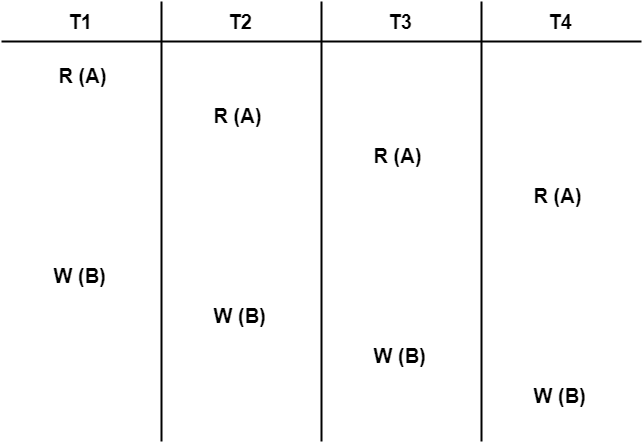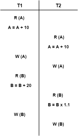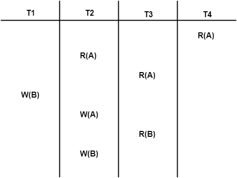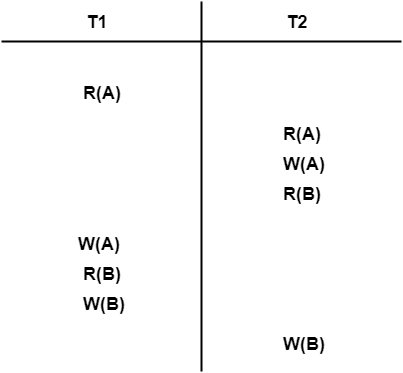 S : R1(A) , R2(A) , R1(B) , R2(B) , R3(B) , W1(A) , W2(B)