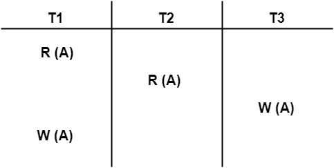S : R1(A) , W2(A) , R3(A) , W1(A) , W3(A)