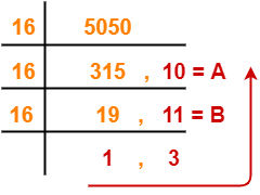= 1 x 163 + 0 x 162 + 5 x 161 + 6 x 160