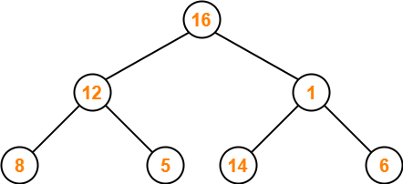 • Node 16 contains greater element in its left child node.