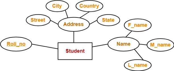 Here, the attributes “Name” and “Address” are composite attributes as they are composed of many other simple attributes.