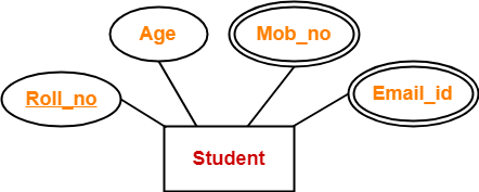 Here, the attributes “Mob_no” and “Email_id” are multi valued attributes as they can take more than one values for a given entity.