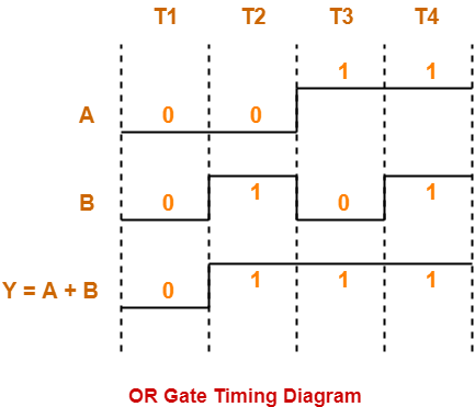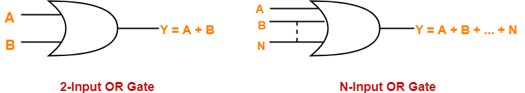 • The output of OR gate is high (‘1’) if all of its inputs are low (‘0’).
