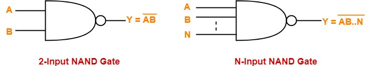 • The output of NAND gate is low (‘0’) if all of its inputs are high (‘1’).