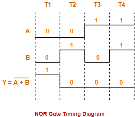 • A NOR Gate is constructed by connecting a NOT Gate at the output terminal of the OR Gate.