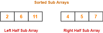 • After finishing elements from any of the sub arrays, we can add the remaining elements from the other sub array to our sorted output array as it is.