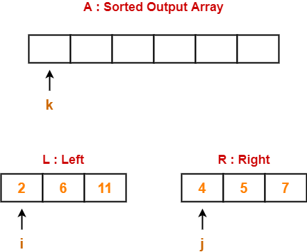 Consider we want to merge the following two sorted sub arrays into a third array in sorted order-