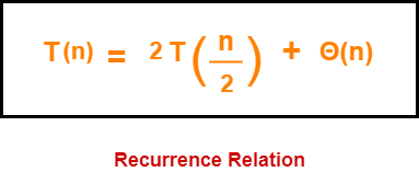 If T(n) is the time required by merge sort for sorting an array of size n, then the recurrence relation for time complexity of merge sort is-