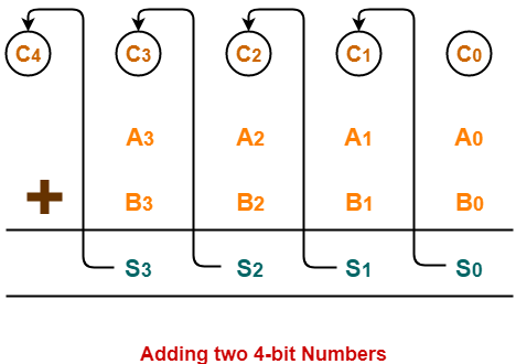 Consider two 4-bit binary numbers A3A2A1A0 and B3B2B1B0 are to be added.