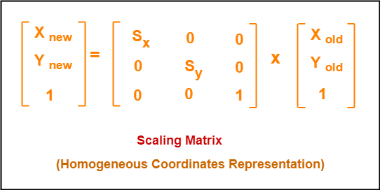 For homogeneous coordinates, the above scaling matrix may be represented as a 3 x 3 matrix as-