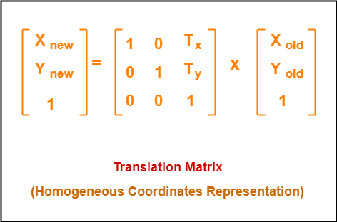 In Matrix form, the above translation equations may be represented as-