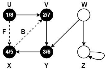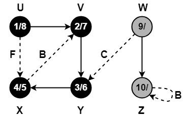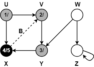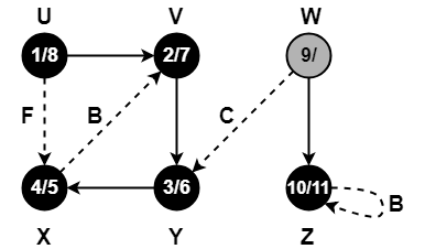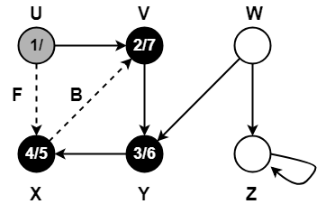 • Vertex X has already been completely processed i.e. vertex X has finished and is black.