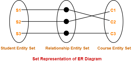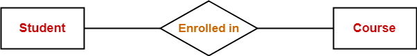 ‘Enrolled in’ is a relationship that exists between entities Student and Course.