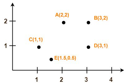 Assume A(2, 2) and C(1, 1) are centers of the two clusters.