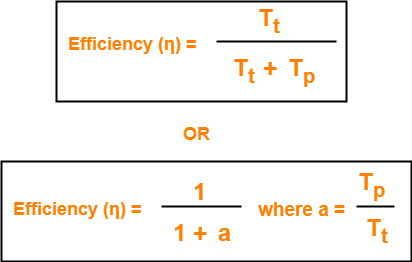 | Efficiency (η) = 1 / 1+a where a = Tp / Tt |